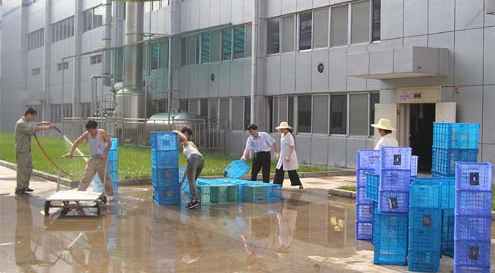 2005年9月10日,公司五十余名党员和入党积极分子,利用休息日,参加了“党员奉献日”活动。活动内容有清除厂区杂草、清洗周转箱、清理长车烘箱及零星维修等。大家顶着烈日干了一个上午,个个汗流满面却毫无怨言,以自己的实际行动给正在开展的“保持共产党员先进性教育活动”添上了浓重的一笔。