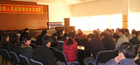 2005年12月19日,公司各级管理人员齐聚五楼多功能厅,开展05年度工作述职及岗位竞聘活动。