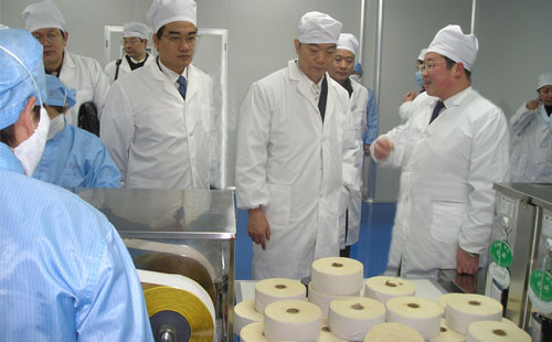 公司总经理姚建平、常务副总经理谢红星等陪同田省长一行参观了橡胶膏、提取生产线,对公司的生产经营和技术革新、产品改造等方面的情况作了简要的介绍。田副省长鼓励公司要结合自身的专业特点,加快开发具有自主知识产权的高新技术产品,提高企业的竞争力,促进企业经济的快速发展。