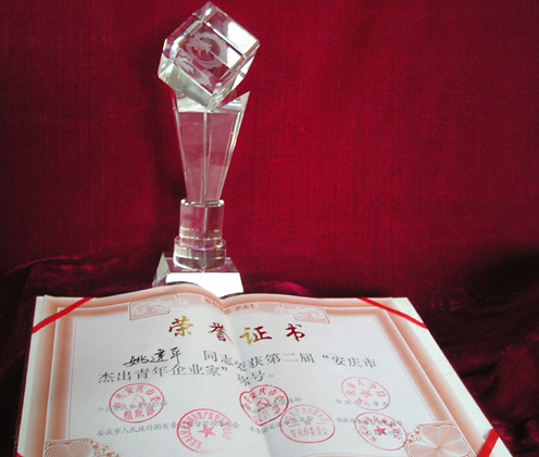 2005年4月26日,安庆市举行了隆重的表彰大会,市领导为杰出(优秀)青年企业家们颁奖并表示祝贺。