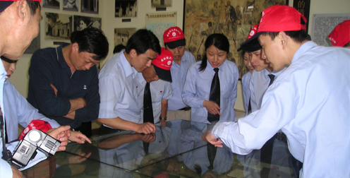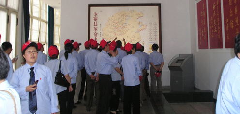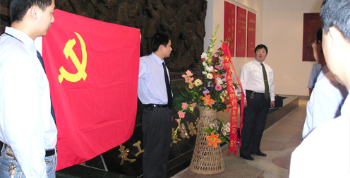 在著名的革命老区——金寨的革命博物馆,党总支书记姚建平代表全体人员向革命烈士敬献了花蓝,表达了对无产阶级先驱者们的崇高敬意。新、老党员们面对着鲜红的党旗庄严宣誓,不惜以鲜血和生命捍卫无产阶级政党和革命的成果。