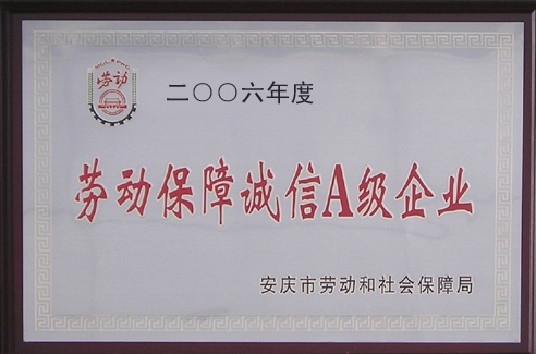 公司获“劳动保障诚信A级单位”称号