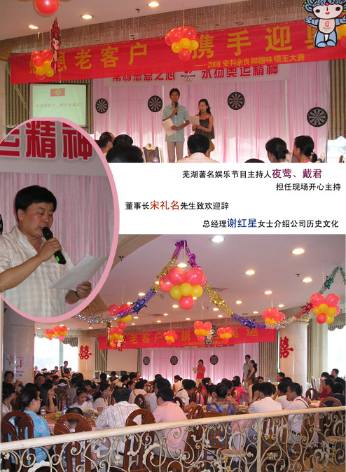 董事长宋礼名先生首先对广大新老客户致谢,感谢大家对安科余良卿的支持与帮助;总经理谢红星、副总经理邓兆旭分别向客人介绍了“余良卿“的文化背景、发展历程和公司的产品结构、销售经营现状;两位客户代表也发表了感言,表达了对安科余良卿的信心和支持公司继续稳固发展的决心。