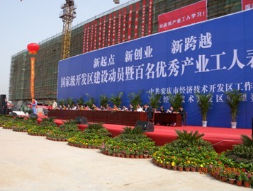 在“五一”国际劳动节来临之际,安庆市经济技术开发区举办了“国家级开发区建设动员会暨百名优秀产业工人表彰会”。市委书记朱读稳、市长肖超英等党政领导纷纷到场,祝贺开发区升为国家级并寄予新的期望;同时,向获奖的优秀产业工人和先进工会组织送上节日的祝福,勉励广大产业工人和基层工会组织在新形式下要不断学习,为企业、社会做出更大的贡献。我公司近三十名员工组成方阵参加了活动,段黄根、张宏两名获“优秀产业工人”称号的员工受到了表彰。